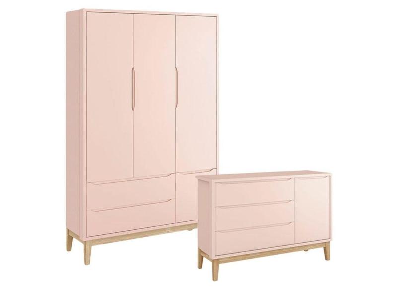 O menor preço encontrado no Brasil para Guarda Roupa Infantil 3 Portas e Cômoda com Porta New Classic Rosa com Pés Madeira Natural - Reller atualmente é R$ 1.645,20.