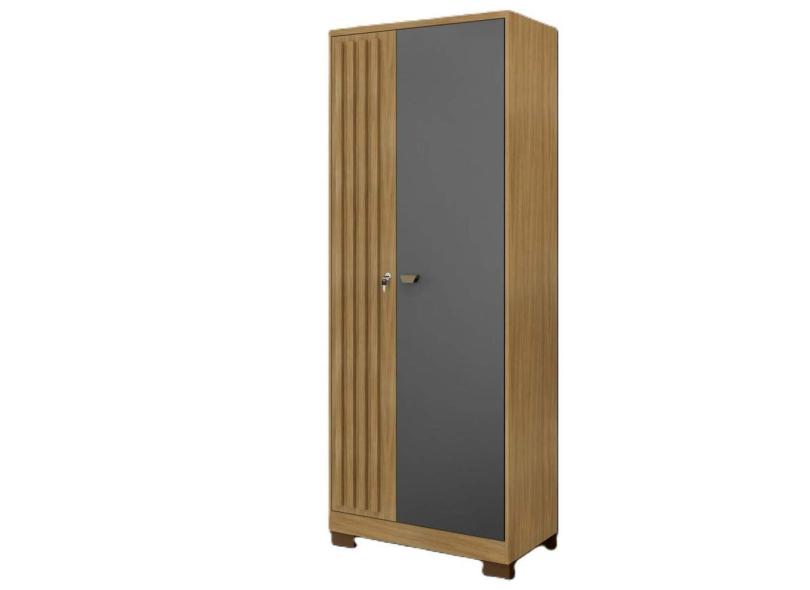 Guarda Roupa Lexa 2 Portas com Chave Cor Carvalho e Grafite - Incorplac