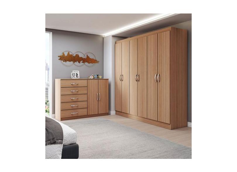 O menor preço encontrado no Brasil para Guarda-Roupa Luna 6 Portas 2 Gavetas com Cômoda 2 Portas 5 Gavetas Dem atualmente é R$ 1.014,68.