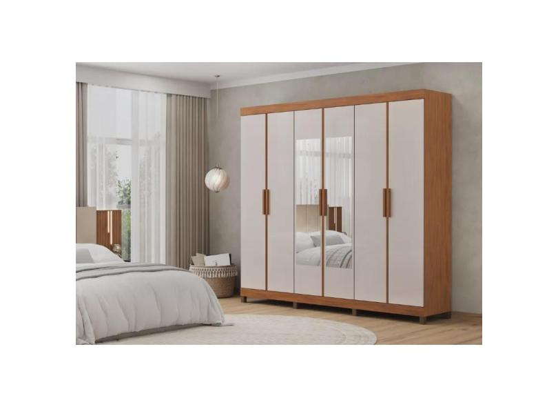 Guarda Roupa mdf 2,18 m 6 Portas 2 Gavetas Com Espelhos e Pés Freijo / Off White dj Neo