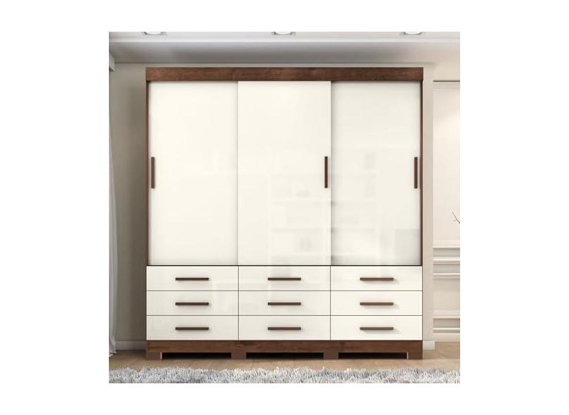 Guarda-roupa Mdp 3 Portas 9 Gavetas Ideale Max Jacaranda/Off White
