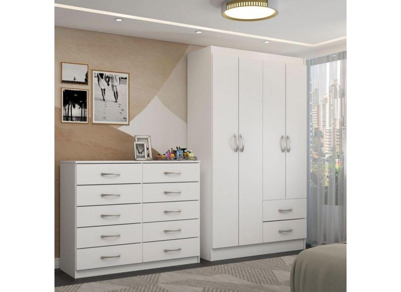 O menor preço encontrado no Brasil para Guarda-Roupa Mila 4 Portas 2 Gavetas com Cômoda 10 Gavetas Branco - Panorama Móveis atualmente é R$ 817,42.