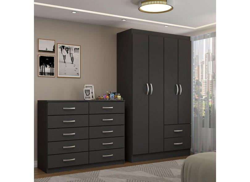 O menor preço encontrado no Brasil para Guarda-Roupa Mila 4 Portas 2 Gavetas com Cômoda 10 Gavetas Preto - Panorama Móveis atualmente é R$ 817,42.