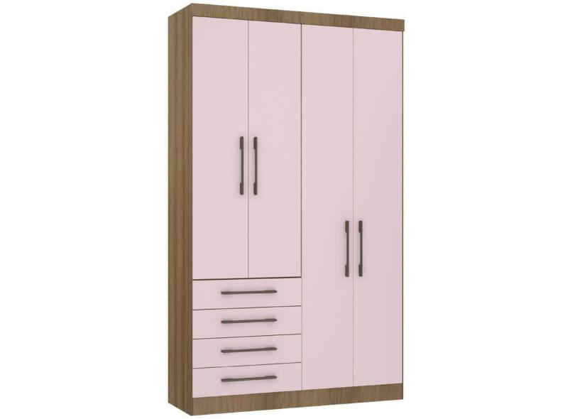 Guarda Roupa Modulado 134,50cm 4 Portas E 4 Gavetas Paris Luciane Móveis Avelã Pf Com Rosa Pf