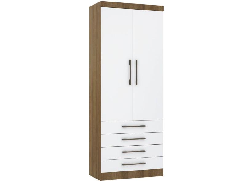 Guarda Roupa Modulado 90cm 2 Portas E 4 Gavetas Paris Luciane Móveis Avelã Pf Com Branco Pf
