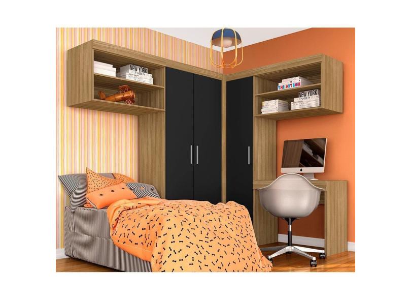 Guarda Roupa Modulado Com Escrivaninha Luzia Boreal/preto - Móveis Arapongas