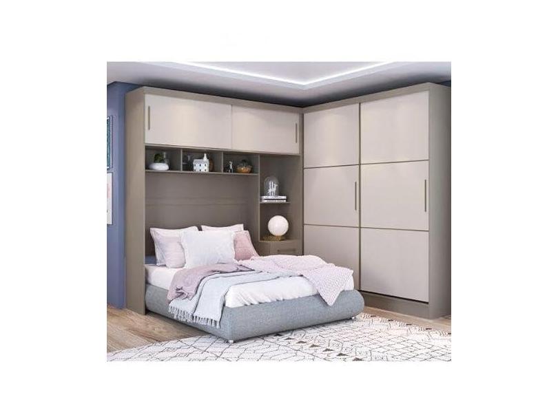 Guarda Roupa Modulado com Ponte Casal 4 Portas 3 Gavetas Classic Móveis Castro Niquel/blanc