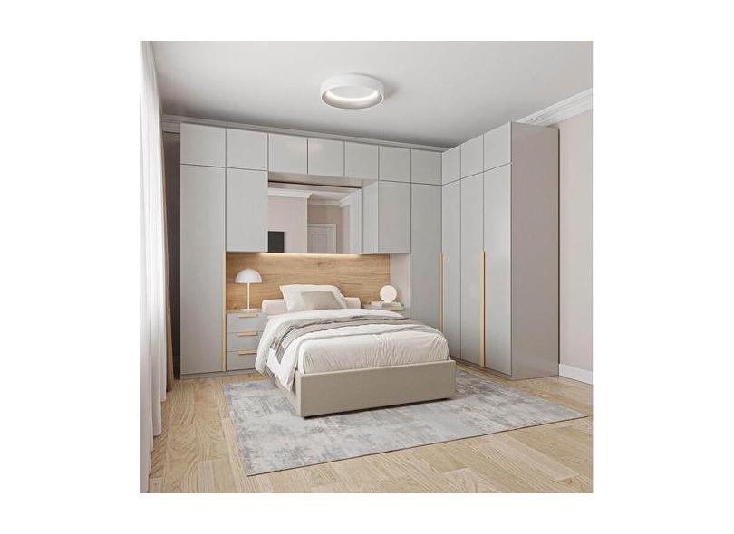 O menor preço encontrado no Brasil para Guarda-Roupa Modulado De Canto 12 Peças 17 Portas 2 Mesas De Cabeceira atualmente é R$ 8.940,90.