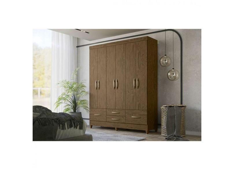 Guarda Roupa Moval Ibiza 6 Portas 4 Gavetas Com Pés Em Pvc Castanho Wood