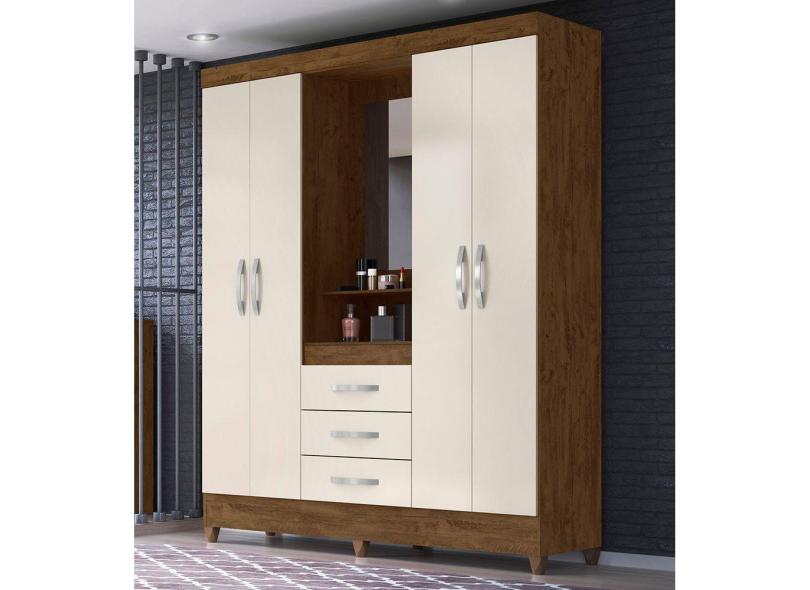 Guarda Roupa Moval Solteiro Capri Castanho Off White Com Espelho