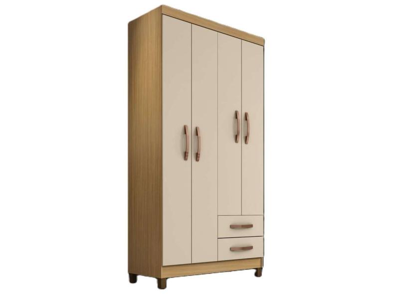 Guarda Roupa Munique 4 Portas com 2 Gavetas com Espelho Cor Carvalho e Off White - Incorplac