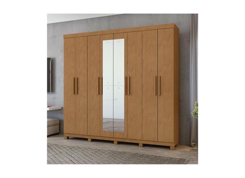 Guarda-Roupa New Andara 8 Portas 4 Gavetas Com Espelho e Pés Móveis Lo