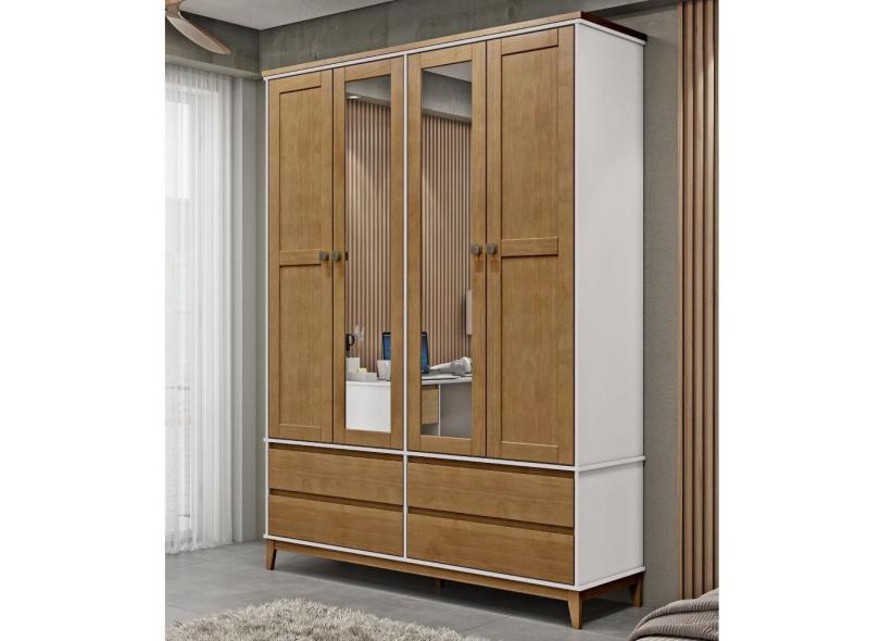 Guarda Roupa Prata com 4 Portas e 4 Gavetas - Off White/Freijó