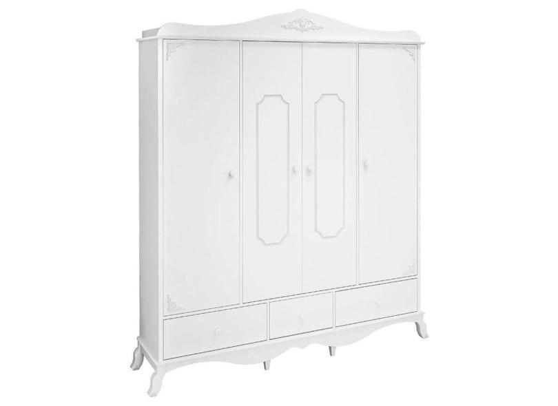 Guarda Roupa Provençal Realeza 4 Portas Cor Branco Acetinado - Canaa