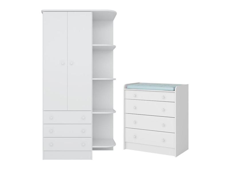 Guarda Roupa Roupeiro Infantil 825 com Cômoda 2523 Doce Sonho Qmovi Branco