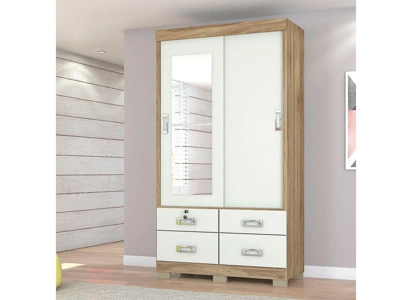 Guarda Roupa Samba 2 Portas De Correr C/ 2 Espelho E 4 Gavetas - Freijo / Off White