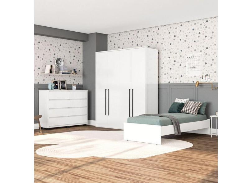 Guarda-Roupa Sevilha 4 Portas Cômoda 8 Gavetas Cama Infanto Juvenil Solteiro Branco
