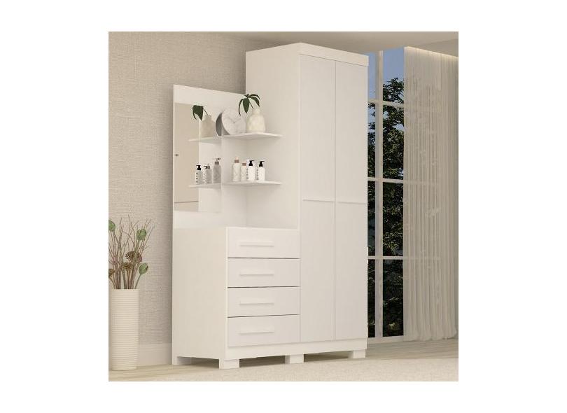 Guarda Roupa Solteiro 110,20cm 2 Portas E 4 Gavetas Com Espelho Flex C
