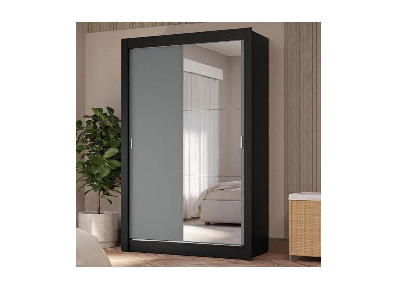 Guarda-roupa Solteiro 2 Portas de Correr com Espelho 4 Gavetas Preto/cinza Vivare Plus Madesa