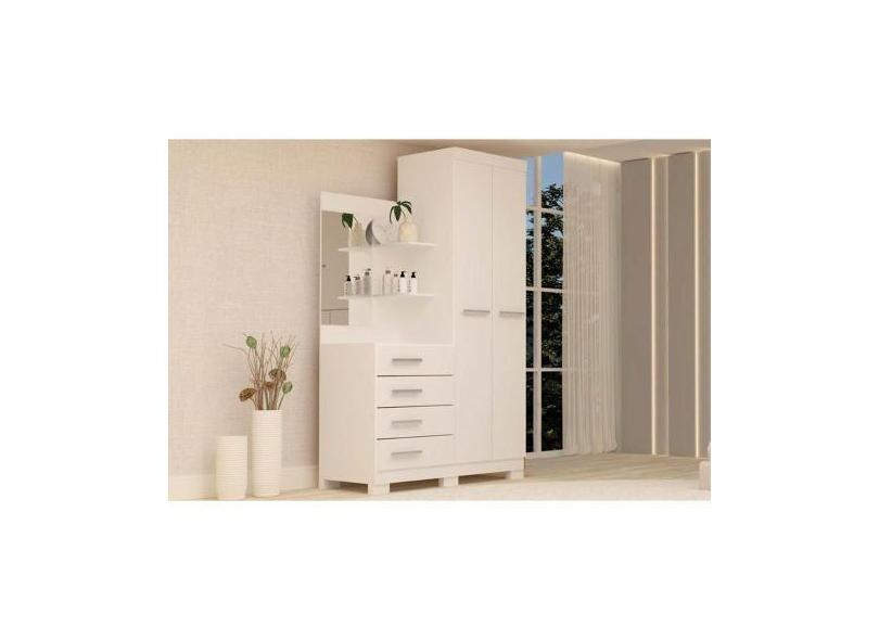 Guarda Roupa Solteiro 2 Portas e 4 Gavetas c/ Espelho Melissa Branco/R