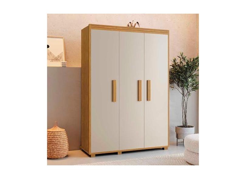 Guarda Roupa Solteiro 3 Portas 124 cm Cinamomo Off White Belize Fênix
