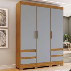 O menor preço encontrado no Brasil para Guarda Roupa Solteiro 3 Portas 4 Gavetas Lema Nature/Cinza - Briz atualmente é R$ 806,33.