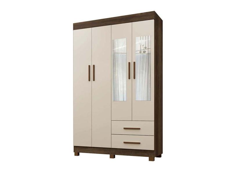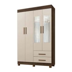 Guarda Roupa Solteiro 4 Portas 2 Gavetas Com Espelho Copacabana New Benetil Móveis Imbuia/Off White