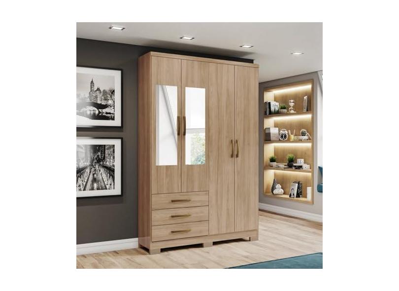 O menor preço encontrado no Brasil para Guarda-roupa Solteiro 4 Portas 3 Gavetas com Espelho Caju Jequitibá Brilho atualmente é R$ 707,31.