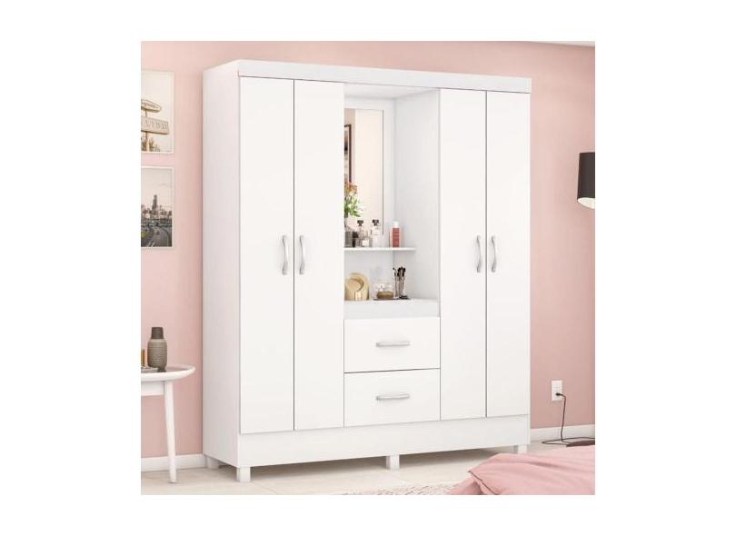 Guarda Roupa Solteiro 4 Portas Com Espelho E 2 Gavetas Loanda - Branco