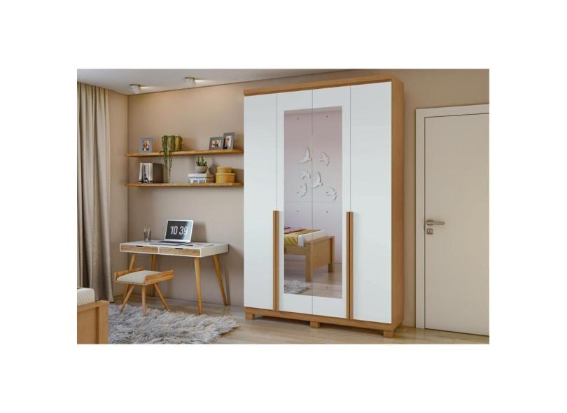 Guarda Roupa Solteiro 4 Portas E 2 Gavetas C/ Espelho E Pés Alonzo Amêndoa/branco - Lopas