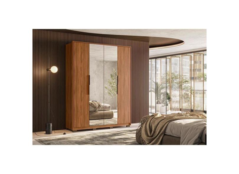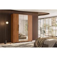 Guarda Roupa Solteiro 4 Portas e 3 Gavetas c/ 2 Espelhos e Pés Attore Nogueira Touch - Demóbile