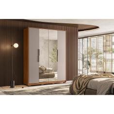 Guarda Roupa Solteiro 4 Portas E 3 Gavetas c- 2 Espelhos E Pés Attore Nogueira Touch-nude Prime