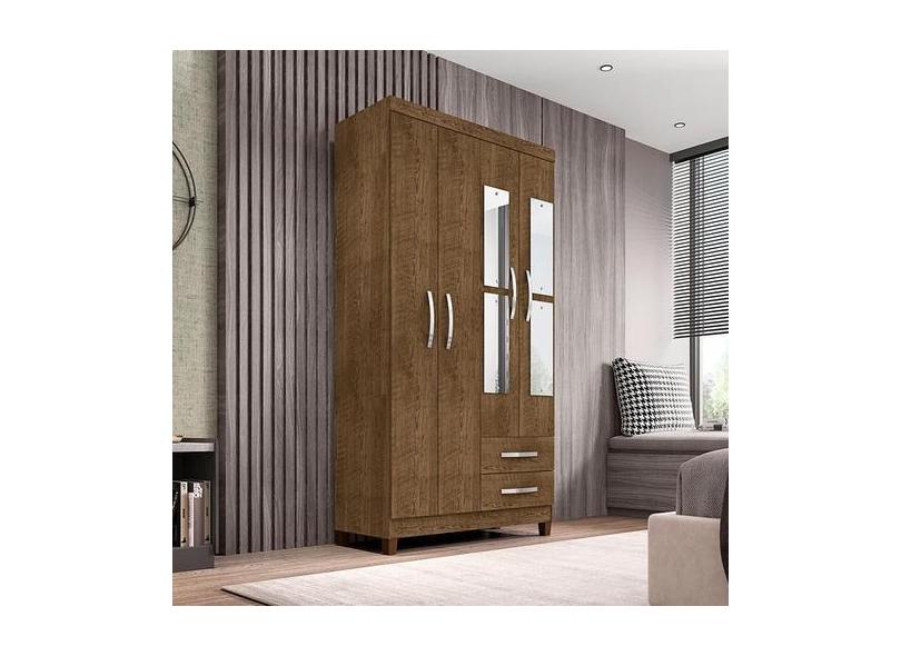 Guarda Roupa Solteiro Ambiente Mogi Com Espelho 4 Portas Malbec - Inco
