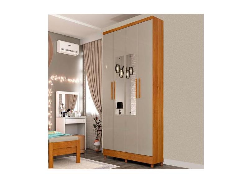 O menor preço encontrado no Brasil para Guarda-Roupa Solteiro Amsterdam 4 Portas 2 Gavetas Com Espelho Cinamom atualmente é R$ 1.972,08.