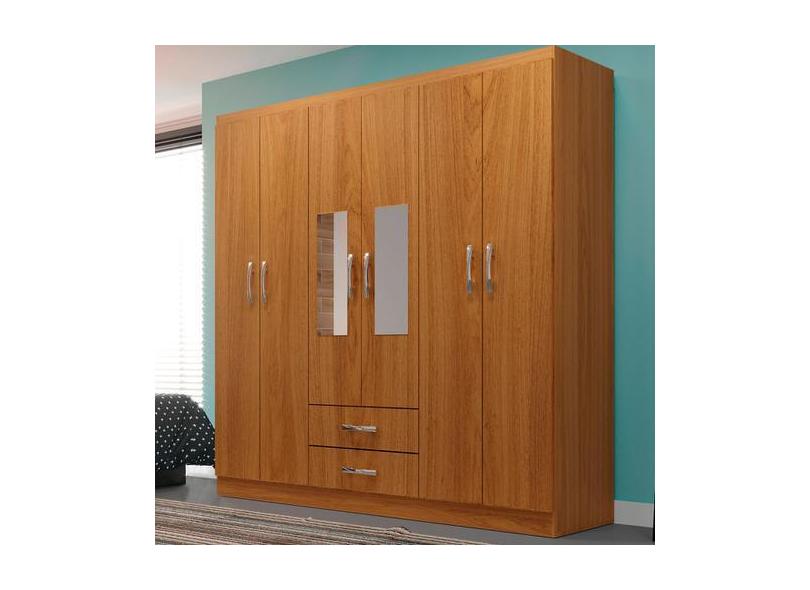 Guarda-Roupa Solteiro Atalaia 6 Portas 2 Gavetas Com Espelho Cinamomo