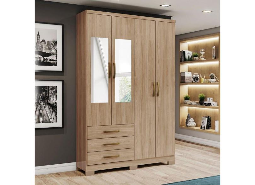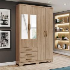 O menor preço encontrado no Brasil para Guarda-Roupa Solteiro Caju 4 Portas e 3 Gavetas com Espelho Jequitibá - Henn atualmente é R$ 703,43.