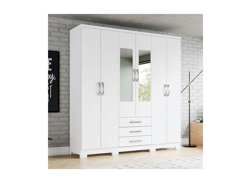 O menor preço encontrado no Brasil para Guarda-Roupa Solteiro Caju 6 Portas 3 Gavetas Com Espelho Branco - Hen atualmente é R$ 1.031,90.