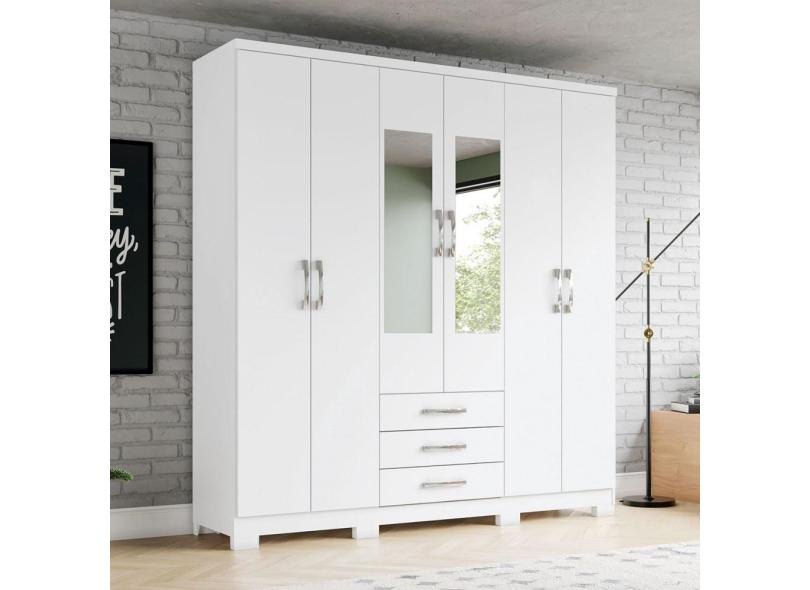 O menor preço encontrado no Brasil para Guarda-Roupa Solteiro Caju 6 Portas 3 Gavetas com Espelho Branco - Henn atualmente é R$ 924,63.