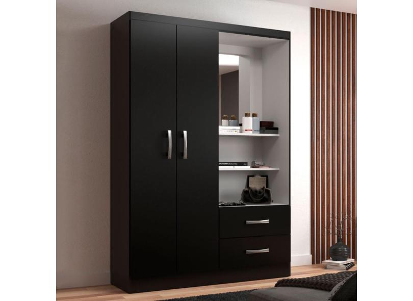 Guarda-roupa Solteiro Capelinha 2 Portas 2 Gavetas Com Espelho Black -