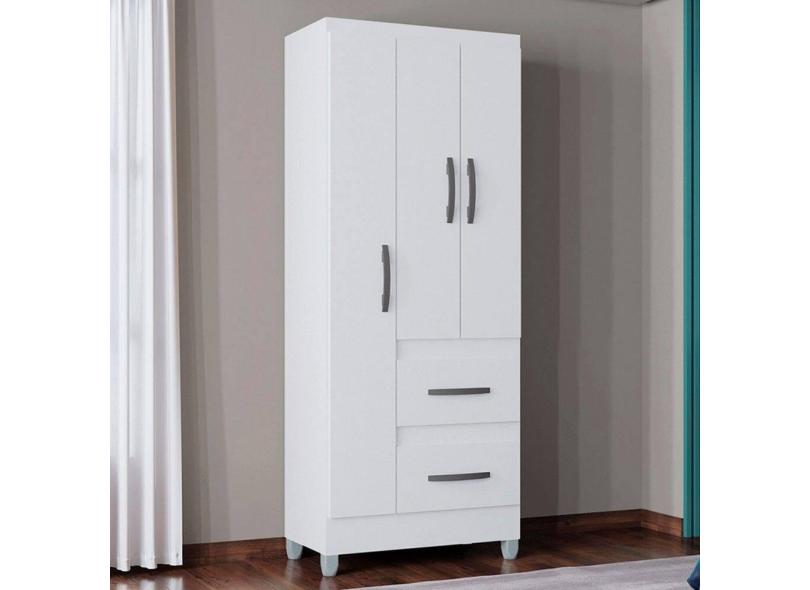 Guarda-Roupa Solteiro Capri 3 Portas 2 Gavetas Branco - Poquema
