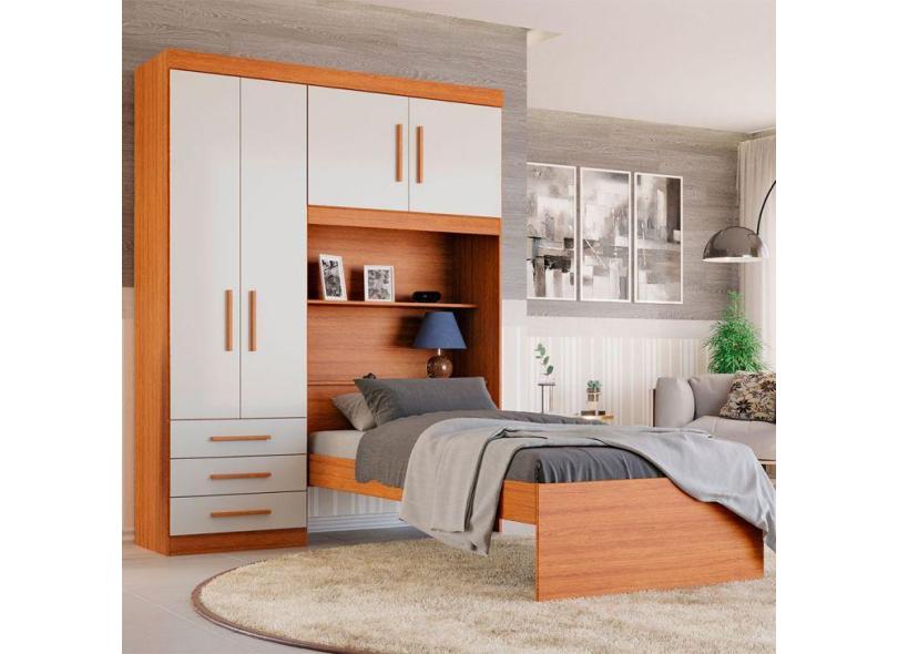 Guarda-Roupa Solteiro com Cama e Baú Advantage 4 PT 3 GV Freijó Wood e Off White