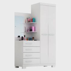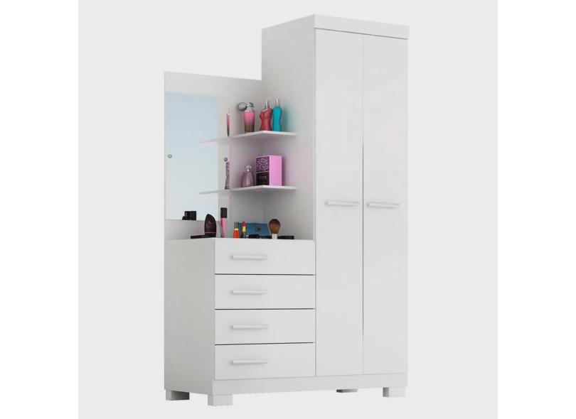 Guarda roupa solteiro com Espelho 2 portas 4 gavetas Melissa acp Móveis Branco