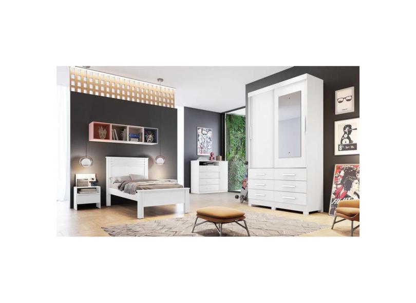 Guarda Roupa Solteiro com Espelho 2 Portas 6 Gavetas - Buriti-Branco - Móveis Novo Horizonte