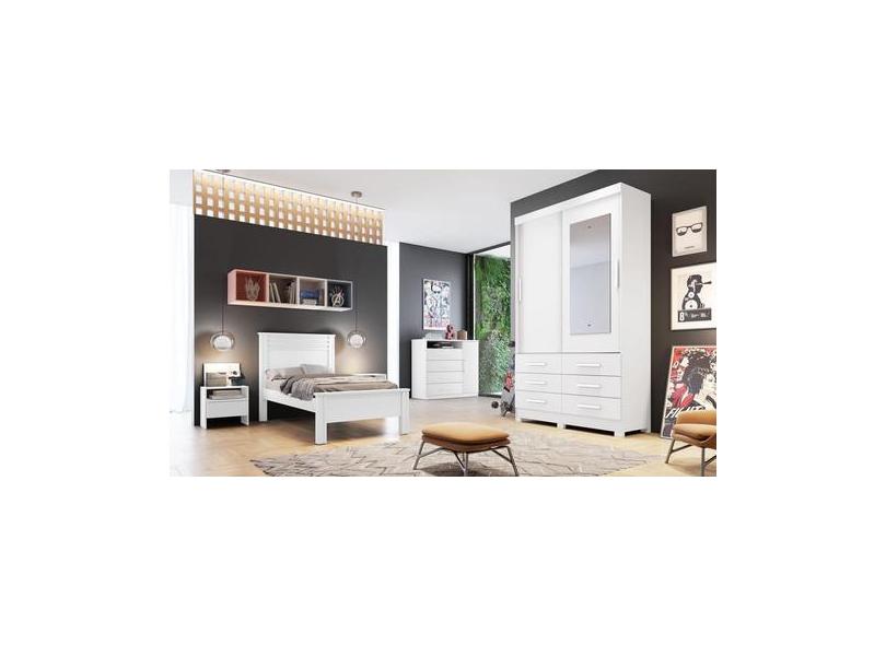 Guarda Roupa Solteiro Com Espelho 2 Portas 6 Gavetas - Buriti-Branco -