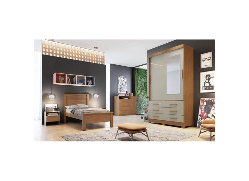 Guarda Roupa Solteiro com Espelho 2 Portas 6 Gavetas - Buriti-Cumaru/Fendi - Móveis Novo Horizonte