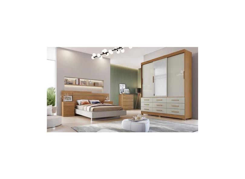Guarda Roupa Solteiro Com Espelho 3 Portas 9 Gavetas - Buriti-Cumaru/F