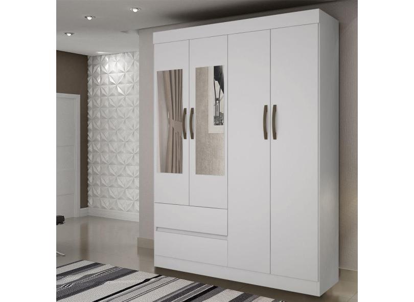 Guarda Roupa Solteiro com Espelho 4 Portas 2 Gavetas New Porto Sallêto Móveis - Branco