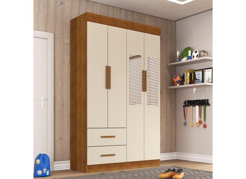 O menor preço encontrado no Brasil para Guarda Roupa Solteiro Com Espelho 4 Portas 2 Gavetas New Verona Sallêto Móveis - Cinamomo/Off atualmente é R$ 1.123,89.