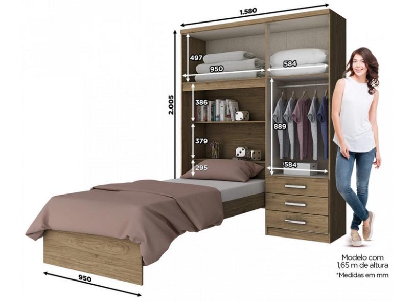 | Características | Prateleiracom EspelhoCama EmbutidaCabideiroModuladocom Baú |