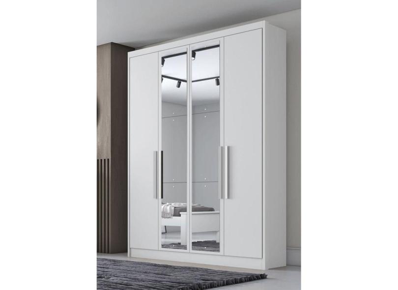 Guarda Roupa Solteiro com Espelho 4 Portas 3 Gavetas - Moderni -Branco - Móveis Novo Horizonte